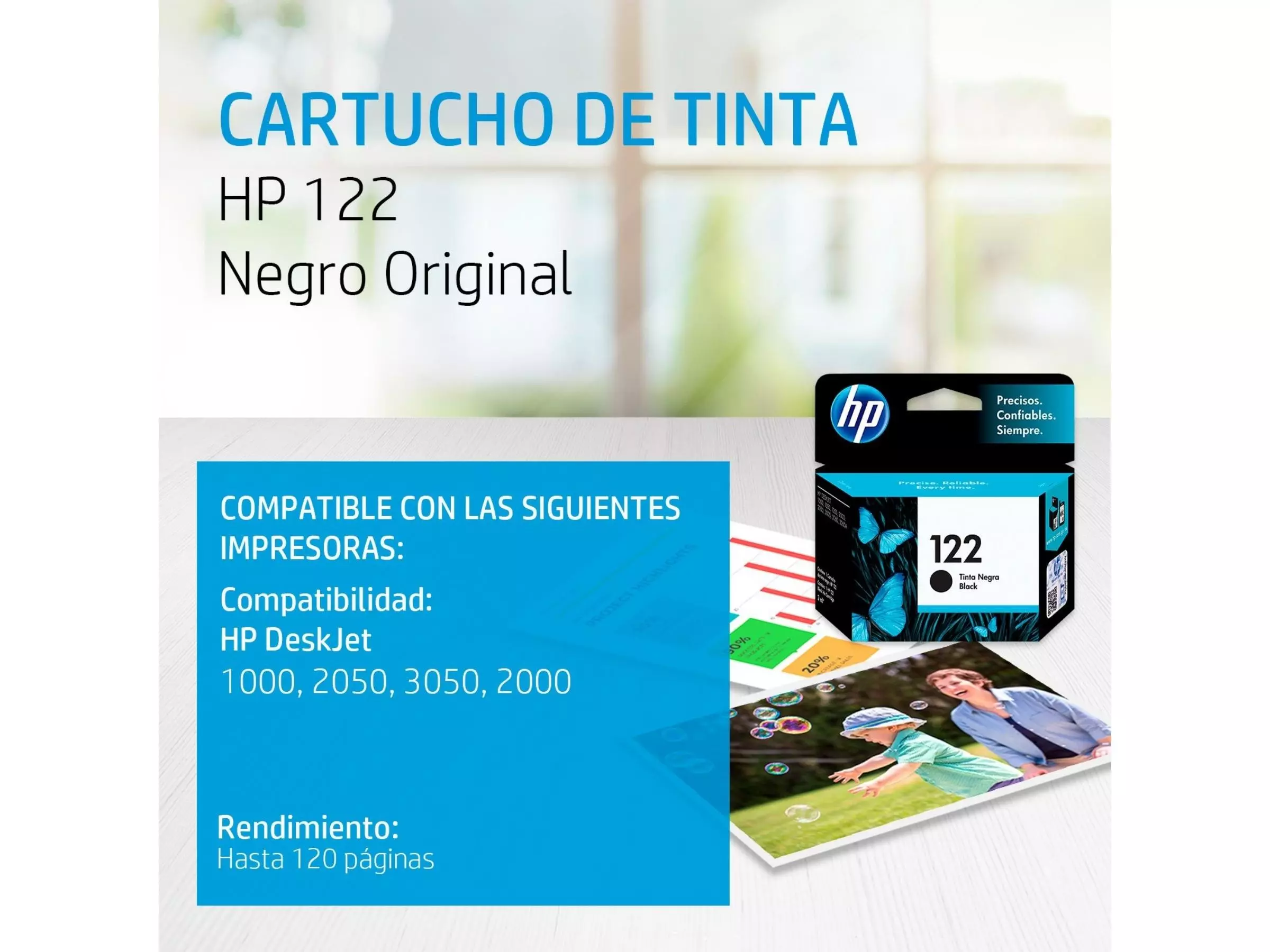| Beneficio | Elige los Cartuchos de Tinta HP Originales, diseñados para brindarte confiabilidad y constancia desde el primer momento¹. |