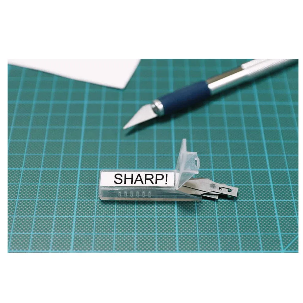 Con 9 mm de ancho, es perfecta para cables, componentes electrónicos, herramientas o cualquier objeto que requiera etiquetas duraderas pero no demasiado anchas.