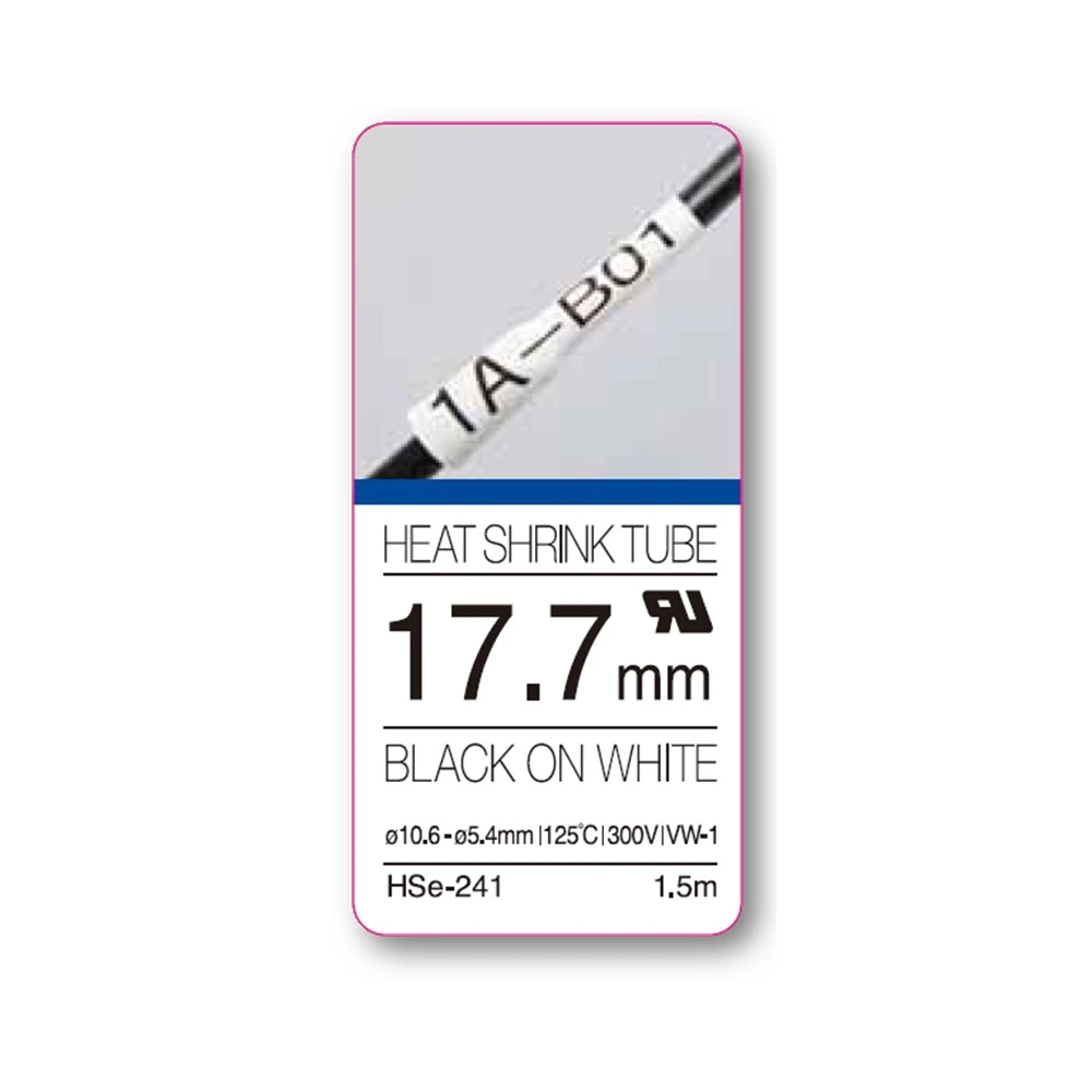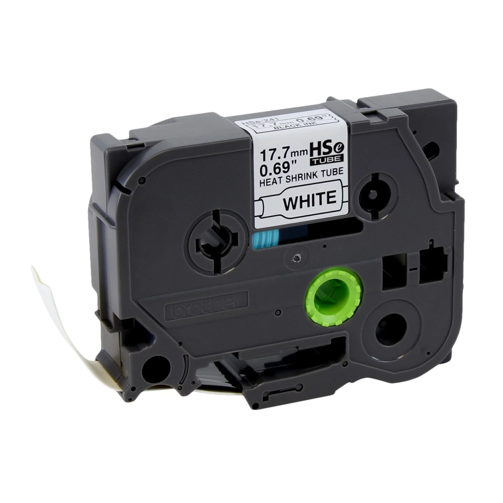 Organiza y protege tus instalaciones con la Cinta Termocontraíble Brother HSE-241 Negro Sobre Blanco 17.7mm x 15m, la opción ideal para etiquetar cables de manera segura y eficiente.