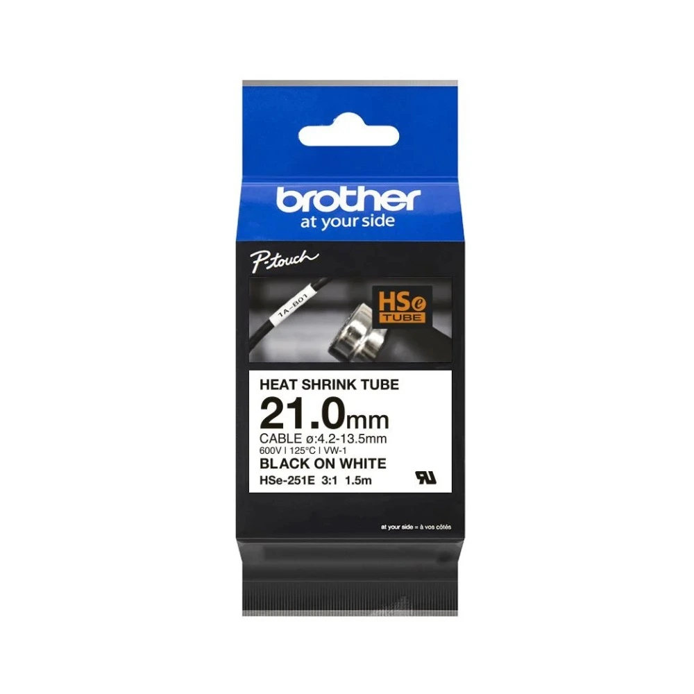 La Brother HSE-251 es una cinta termocontraíble diseñada para la identificación duradera de cables gruesos. Utiliza un mecanismo de contracción por calor para ajustarse perfectamente al cable, manteniendo la etiqueta firme, legible y protegida de factores ambientales.