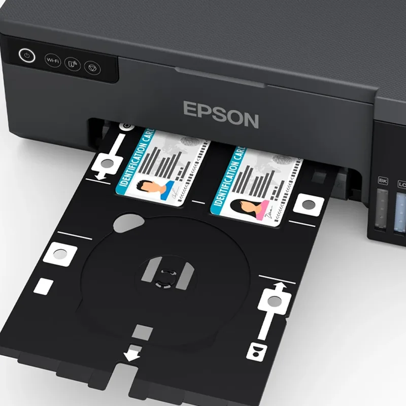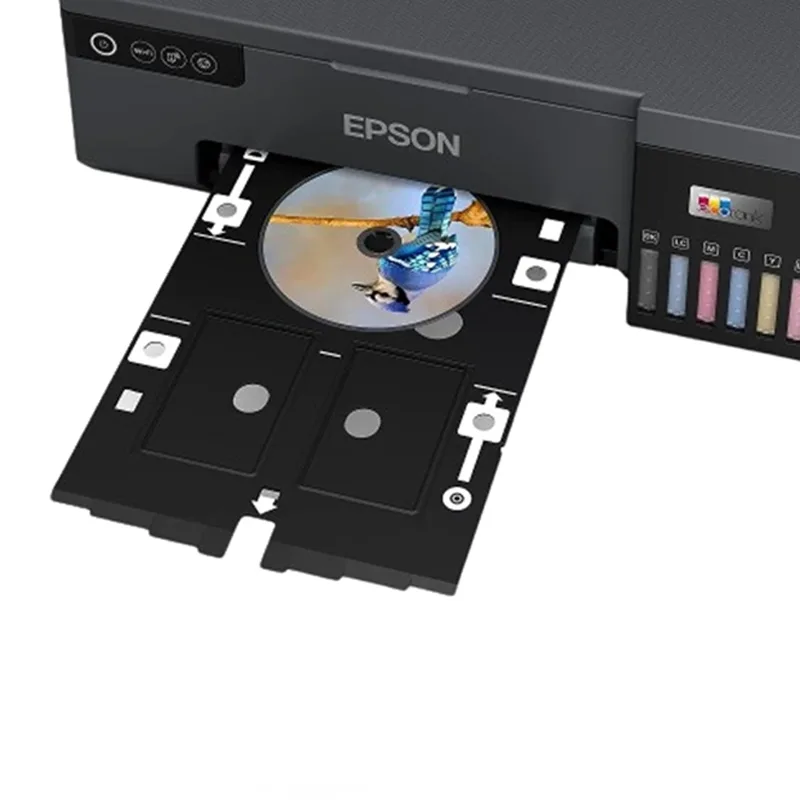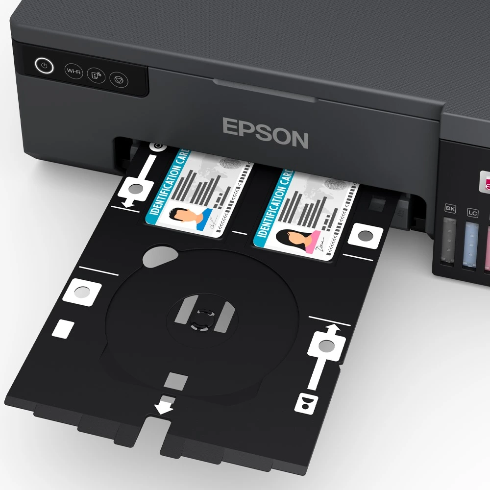 La Epson EcoTank L8050 destaca por su capacidad para imprimir en PVC, CD y DVD, ideal para personalizar tarjetas, discos y proyectos creativos. Su bandeja especial asegura resultados precisos y profesionales, perfectos para negocios de fotografía y diseño.
