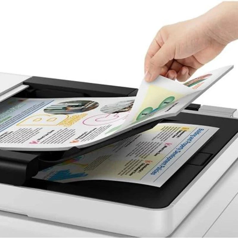 Es una máquina 3 en 1 (imprime, copia y escanea) con funciones avanzadas de conectividad, ideal para entornos con múltiples dispositivos y usuarios.