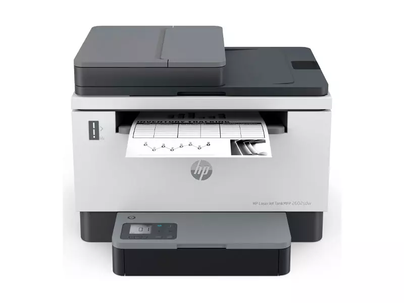 A pesar de ser una impresora multifuncional, la HP Tank MFP 2602SDW tiene un diseño compacto y elegante, que se adapta perfectamente a oficinas con espacio limitado. Su aspecto moderno también la hace adecuada para entornos de trabajo profesionales.