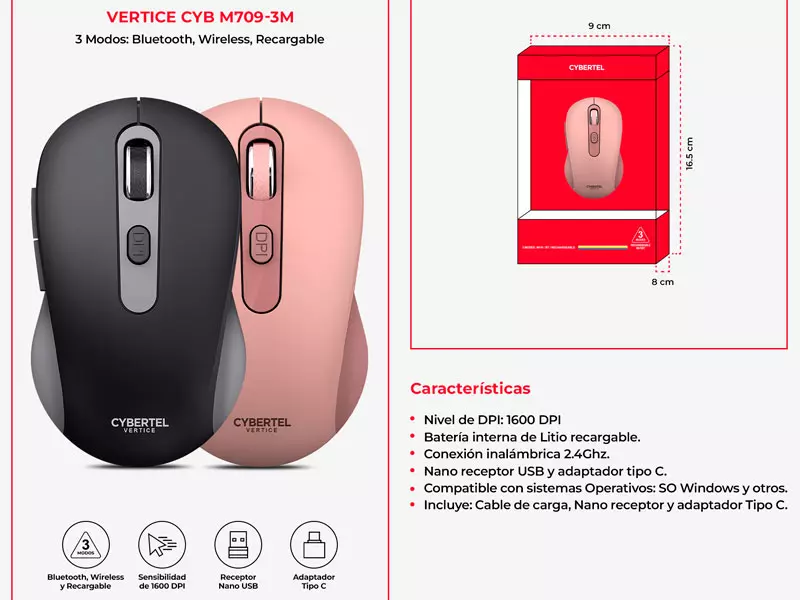 | 3 Modos: Inalámbrico/ Bluetooth/Recargable. |