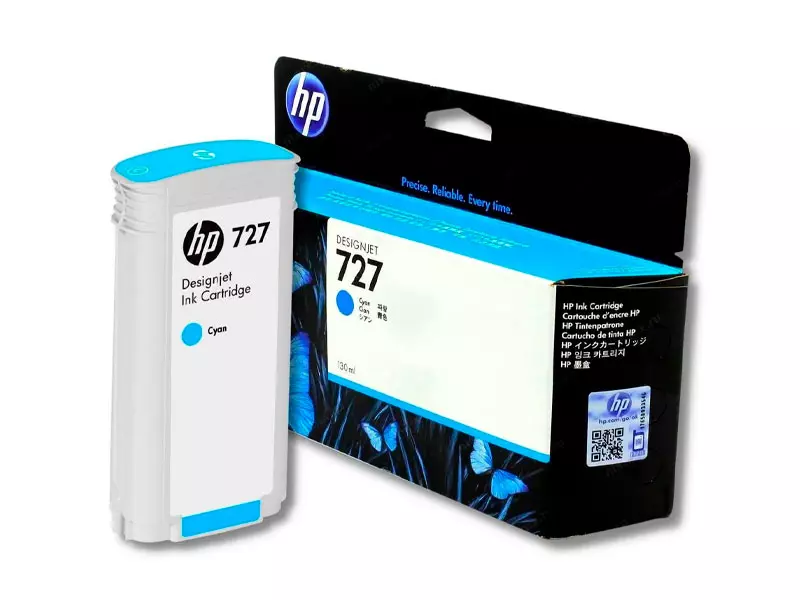 La tinta HP B3P19A (727A) Cyan es un cartucho de tinta de inyección de tinta de 130 ml compatible con las impresoras HP DesignJet T1500, T1530, T920, T930, T2530, T2500 eMFP.