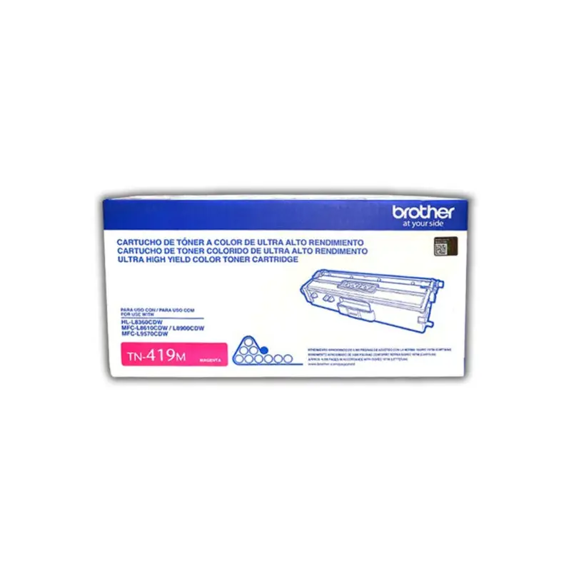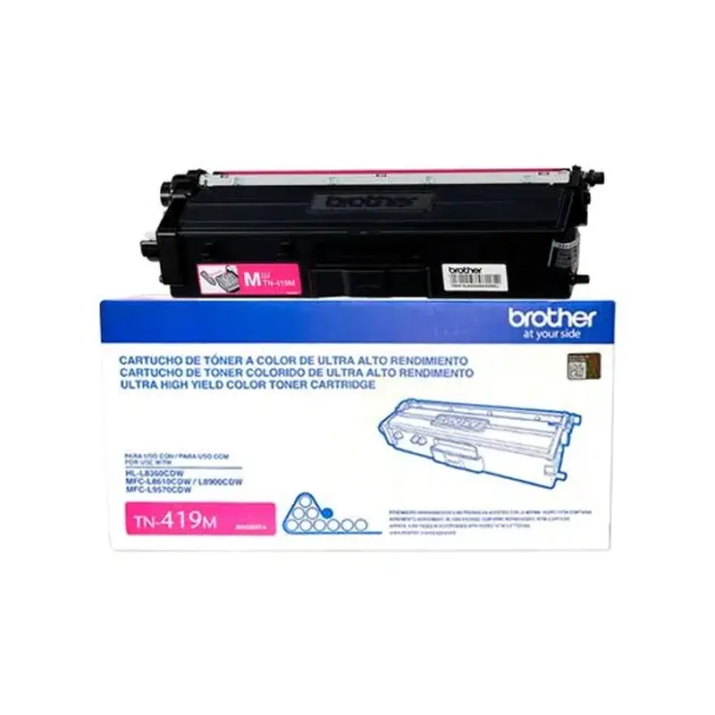 Encuentra los mejores precios para el Tóner Brother TN-419M en nuestra tienda online. Este cartucho ofrece un excelente costo por página, ideal para oficinas con alto volumen de impresión en color. Evita los riesgos de cartuchos genéricos y opta por la calidad premium OEM que garantiza un rendimiento óptimo y ahorros a largo plazo.